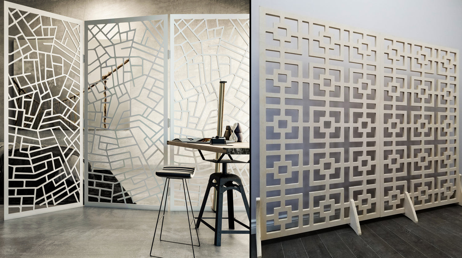 Your panels can be hinged together in order to be free-standing or they can have legs in their design.
